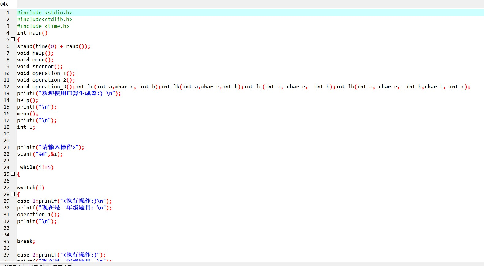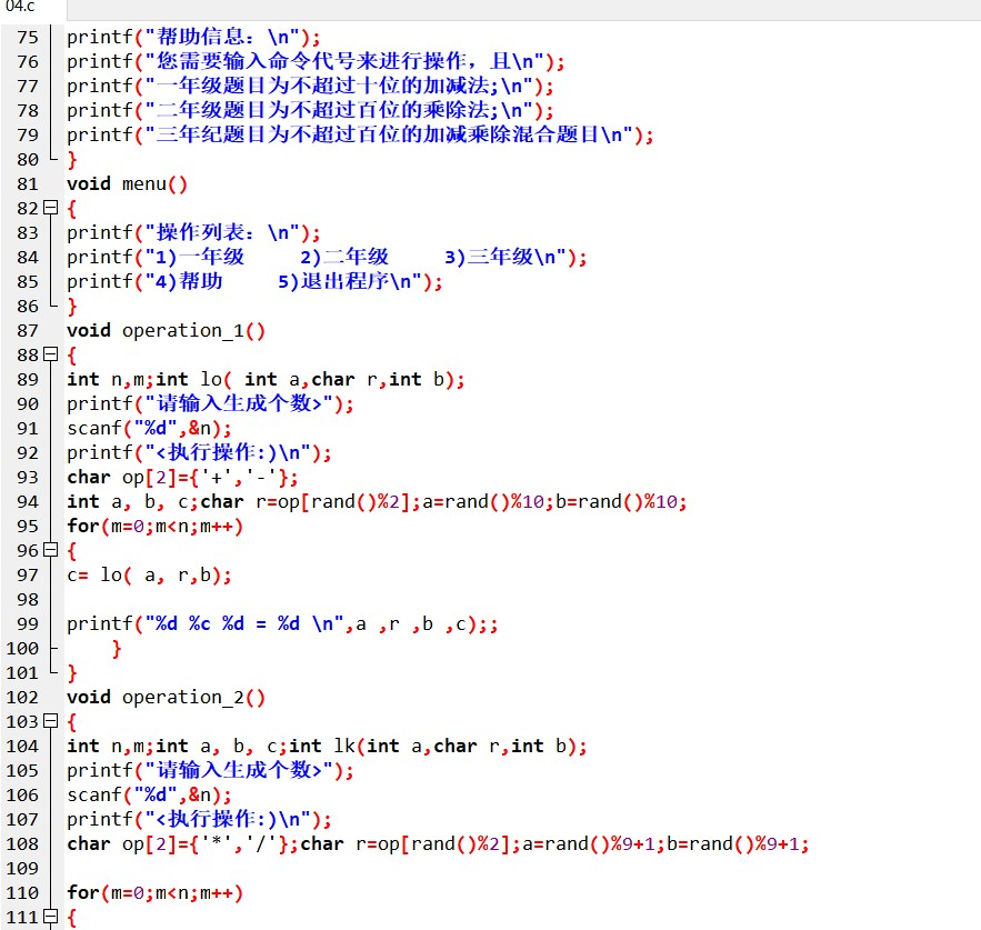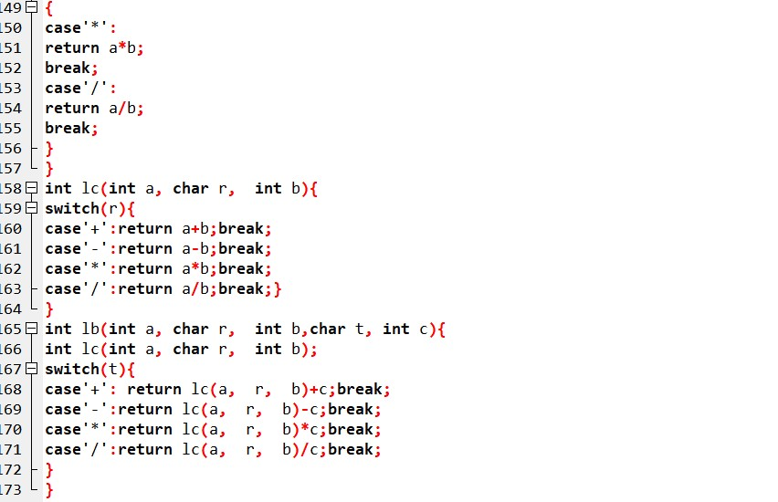 遇到的问题:因为三年纪是有两个运算符的,所以按我的方法的话是要用上两个函数,但我一开始没有注意到,所以就发现有两个字符型变量,但case只能辨别一种。然后就想了想再增加一个函数好了,问题就解决了。