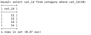 读取cat_id并且读取cat_id>10的数据: