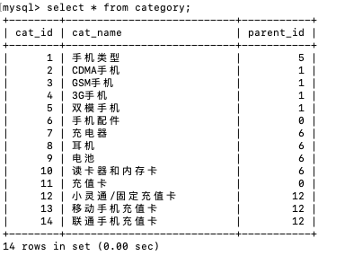 读取数据:读取cat_namehe 和 parent_id