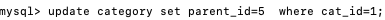 更新数据:当cat_id=1时,使得parent_id=5
