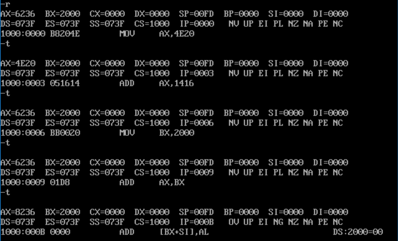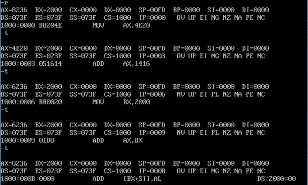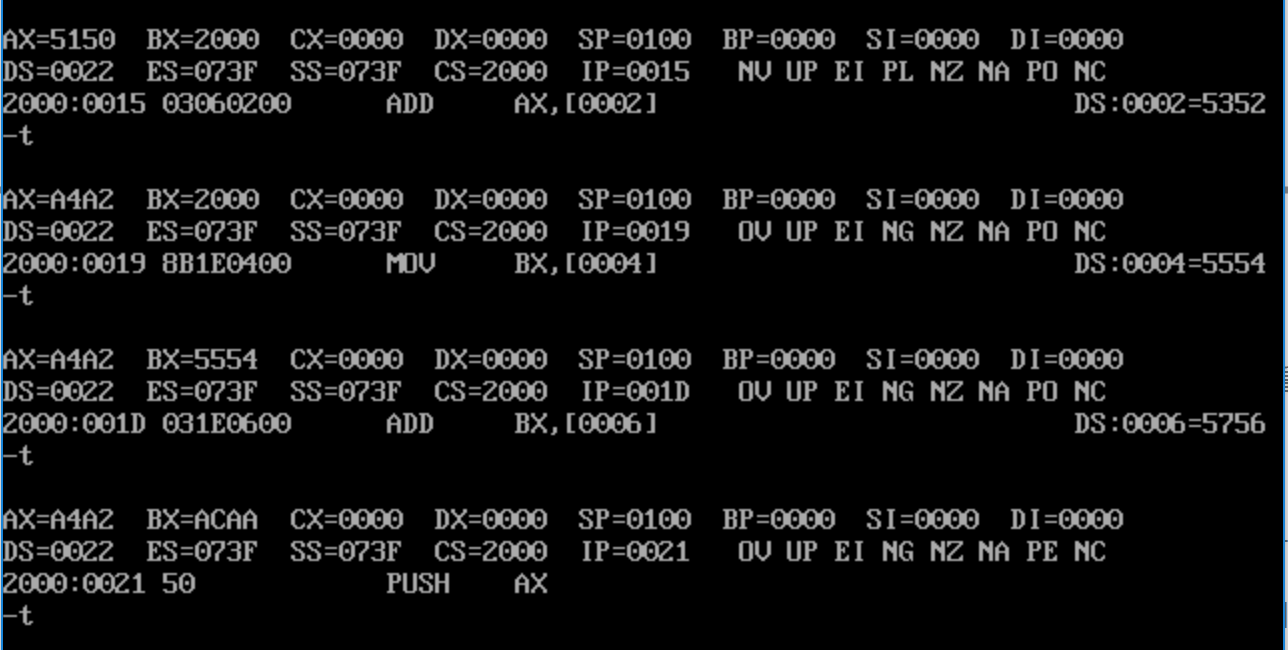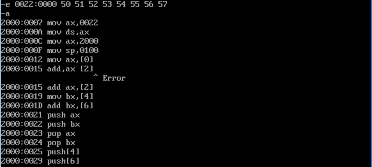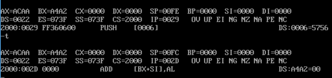 通过查阅资料,知道了dos系统下只有一个栈,除了push和pop操作以外,该栈还需要暂存寄存器指令,例如cs,ip的数据。所以执行完几条指令后栈里已经有了数据,而并非等到push或pop操作栈里才有数据。