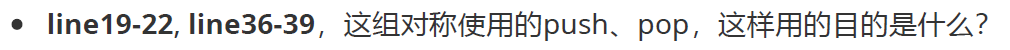 这样用的目的是在子程序的开始将子程序中所有用到的寄存器中的内容都保存起来,在子程序返回前再回复,避免寄存器的冲突问题。