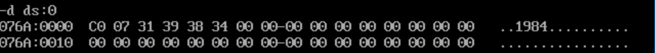 使用d命令查看数据段的数据,1984已经转换为字符串