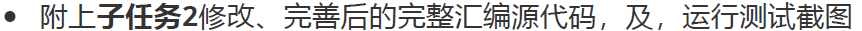 assume cs: code, ds: data data segment x dw 1984 str db 16 dup(0) data ends code segment start: mov ax, data mov ds, ax mov ax, x mov di, offset str call num2str mov si, offset str mov al, 2 call show ;调用task2的子程序 mov ah, 4ch int 21h num2str: push ax push bx push cx push dx mov cx, 0 mov bl, 10 s1: div bl inc cx mov dl, ah push dx mov ah, 0 cmp al, 0 jne s1 s2: pop dx or dl, 30h mov [di], dl inc di loop s2 pop dx pop cx pop bx pop ax ret show: push bx push cx push si push di mov bx, 0b800H mov es, bx mov di, 0 s3: mov cl, [si] mov ch, 0 jcxz over mov ch, al mov es:[di], cx inc si add di, 2 jmp s3 over: pop di pop si pop cx pop bx ret code ends end start