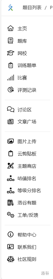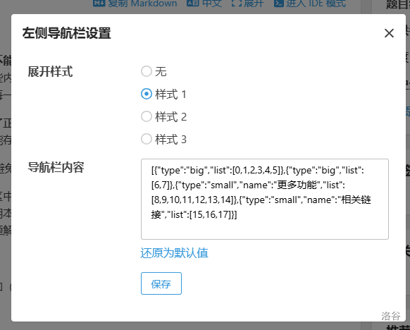 点击“还原为默认值”可以变成洛谷标准左侧导航栏。