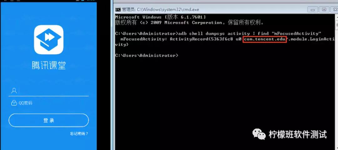 例图,我开启腾讯课堂的应用,输入命令后,得到包名为com.tencent.edu
