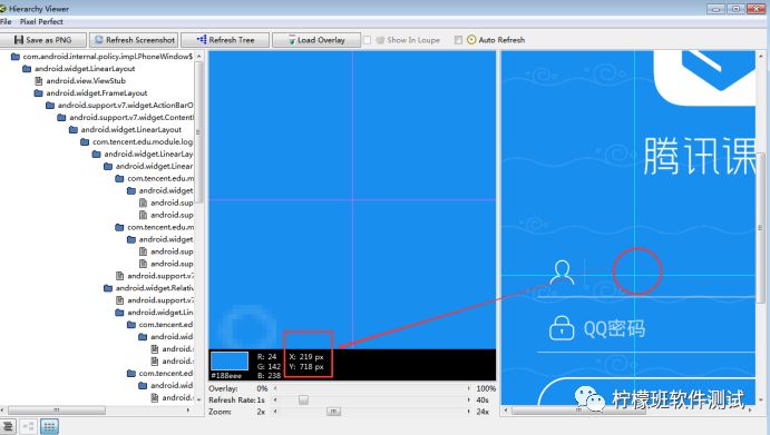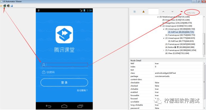 ---->在android sdk路径-tools下,使用sdk中的工具hierarchyviewer.bat或者uiautomatorviewer.bat,获取API方法中控件位置(X,Y轴的坐标)。