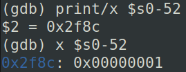 int a = 1;i以后),continue。此时我们先来预测一下结果,看汇编代码,li a5,1表示a5存的是1,也就是变量a的值,sw a5,-52(s0)表示将a5的值存到s0-52的地址处,也就是a的地址,所以s0-52就表示变量a的内存单元,我们不妨打印这个地址和地址中的值:
