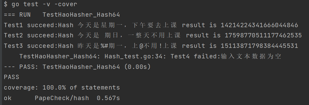 fmt.Printf("Test4 succeed:Hash %s result is %v\n", s4, r4)