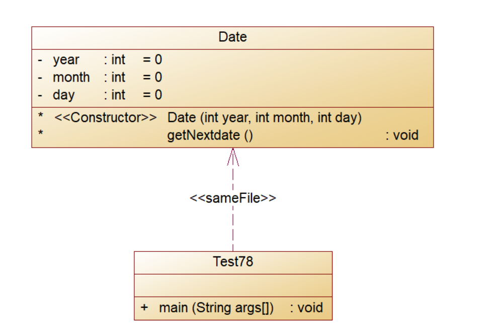 将年月日作为日期的私有属性,将输入的信息参数传入类中,再在类中调用方法,输入结果。