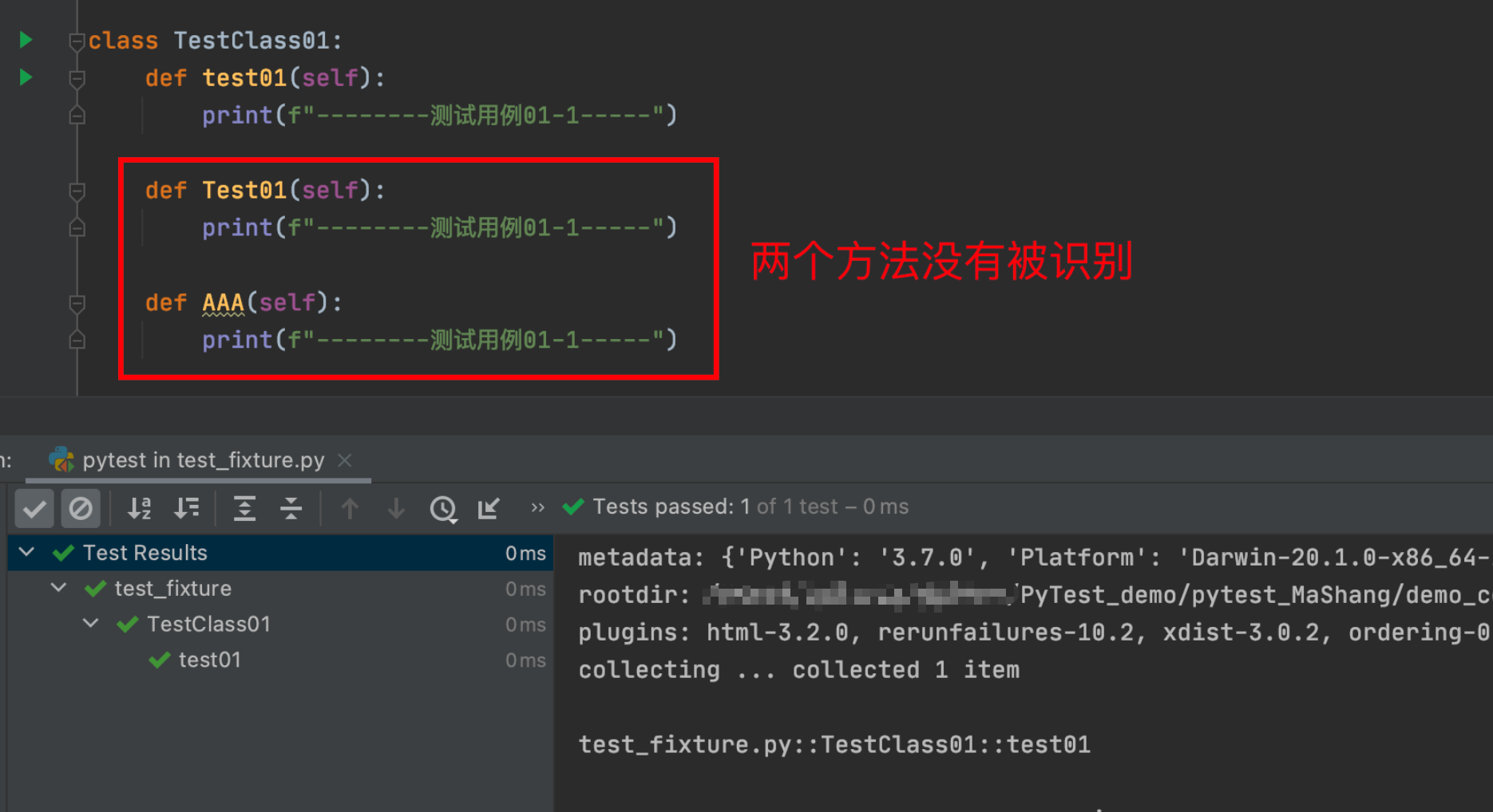 规则:类名符合Test*格式;且类中不带构造方法(__init__方法)