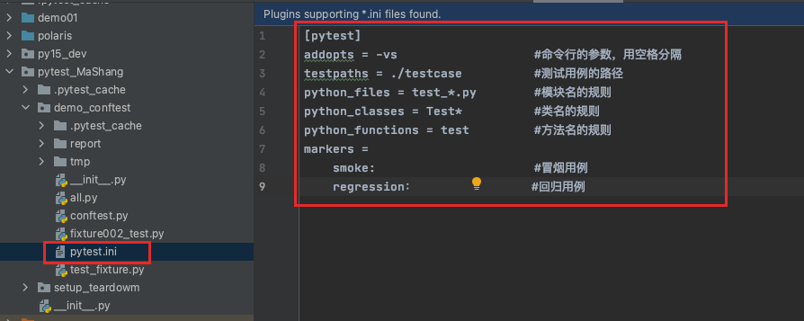 2. 对于python_files,python_classes,python_functions等配置,即pytest执行是自动取发现用例的文件名,类名,方法名的相关规则(如果没有当前ini文件,