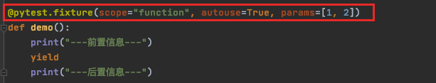 参数值--package: 包级别,针对当前固件所在的目录结构中,其父目录下第一条用例执行开始和最后一条用例执行结束都会执行一次固件函数