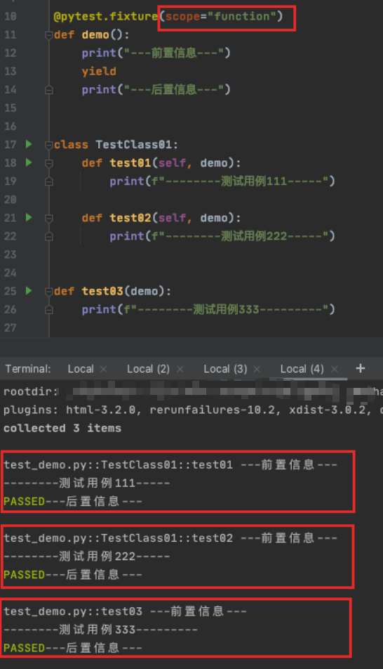参数值--function: 方法级别,最小级别,默认级别,代表测试用例中,每一个方法(函数)在执行前后都会执行一次当前固件函数