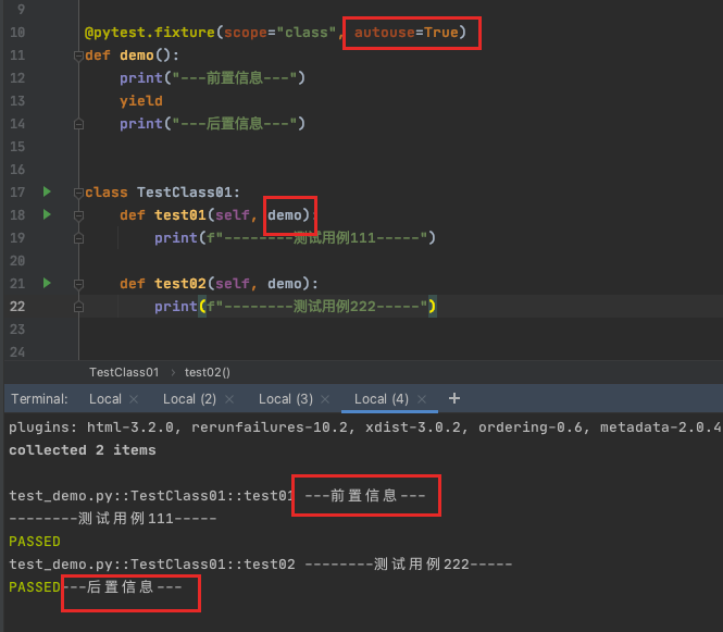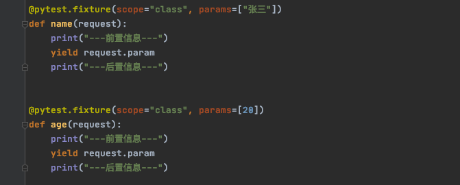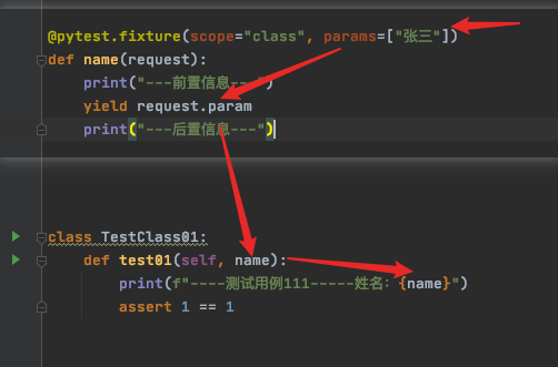 参数值--class: 类级别,代表测试用例中,每一个类/普通函数在执行前后都会执行一次固件函数