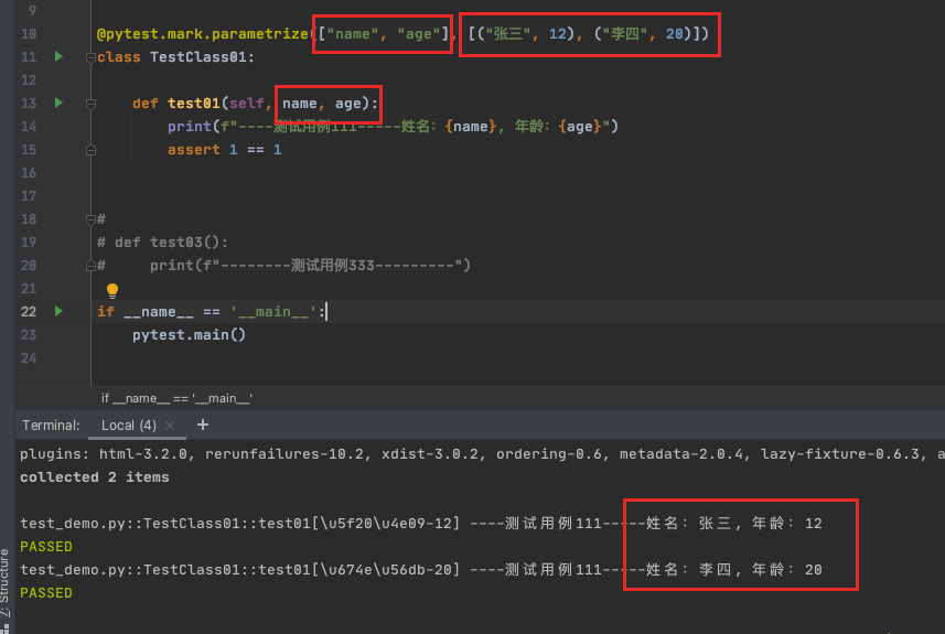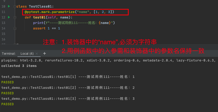 方式二:通过标记:@pytest.mark.parametrize() 实现参数化