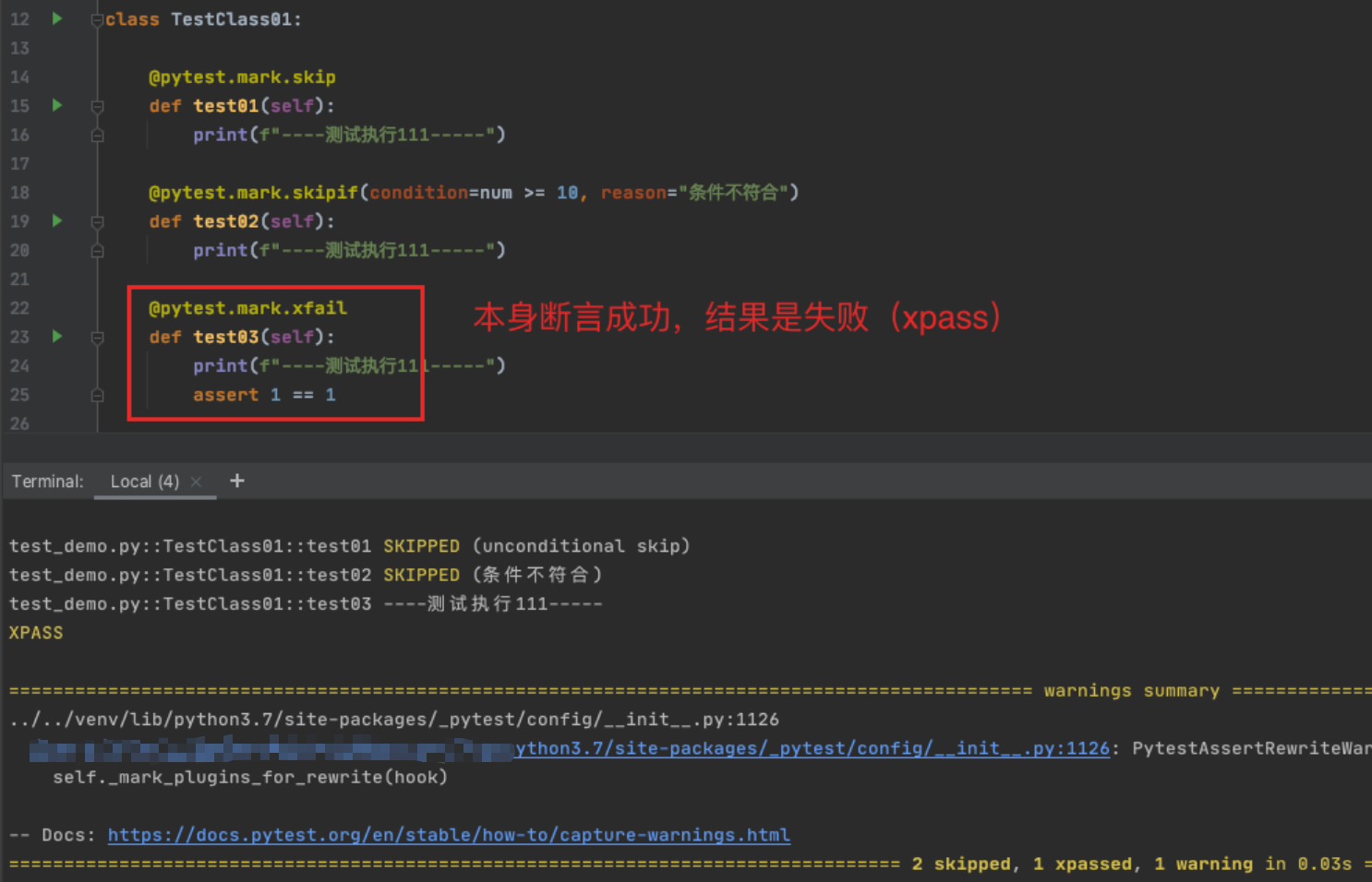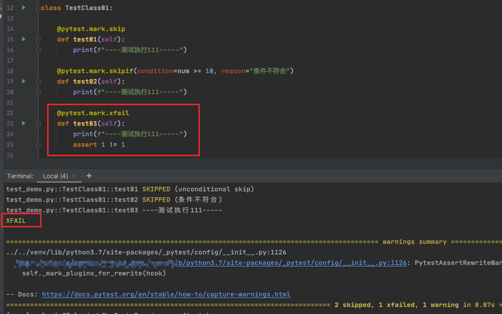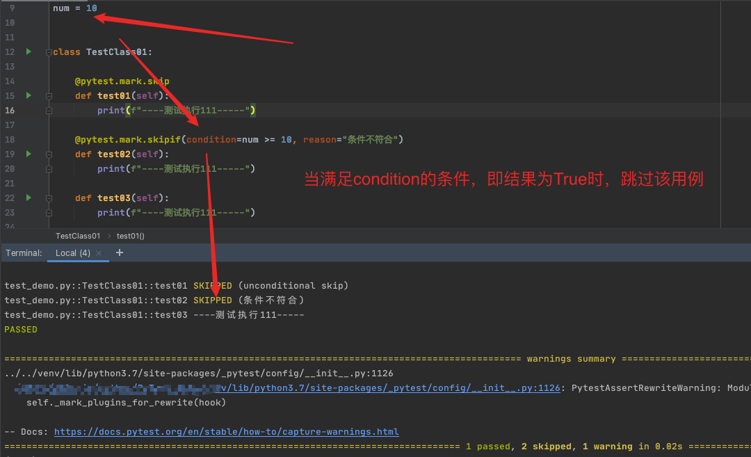 命令:@pytest.mark.skipif(condition=num >= 10, reason="条件不符合")