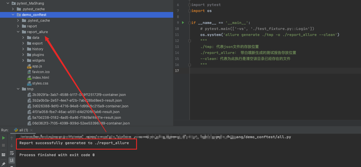 python执行命令:os.system('allure generate ./tmp -o ./report_allure --clean')
