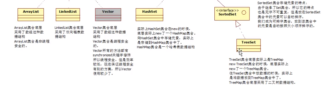 - TreeSet:底层是TreeSet,放到HashSet集合中的元素等同于放到HashMap集合部分的key部分。