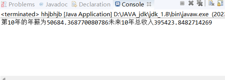 System.out.println("第10年的年薪为"+x+"未来10年总收入"+sum);