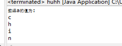 3.定义字符型数组,分别存储c、h、 i、n、a 并在控制台输出
