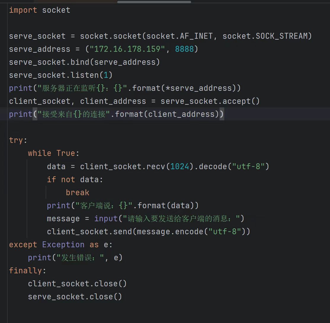 (1)创建服务端和客户端,选择一个通信端口,用Python语言编程实现通信演示程序;