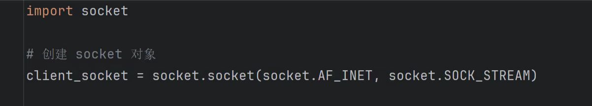 (6)随后进行客户端的构建,过程与服务器基本相同。首先导入socket函数并创建套接字。