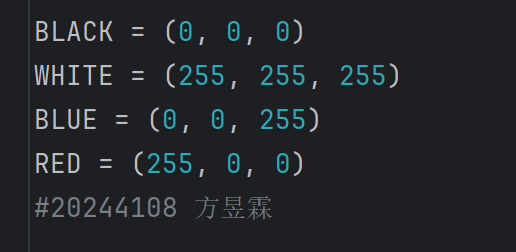 用RGB元组形式表示游戏中会用到的几种形式,我选择了蓝色和红色作为方块的颜色。