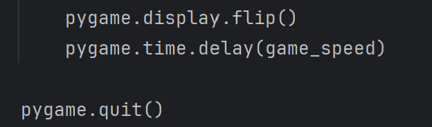 使用函数pygame.display.flip() 来更新屏幕显示内容,并根据game_spee设置的时间进行延迟,控制游戏节奏。