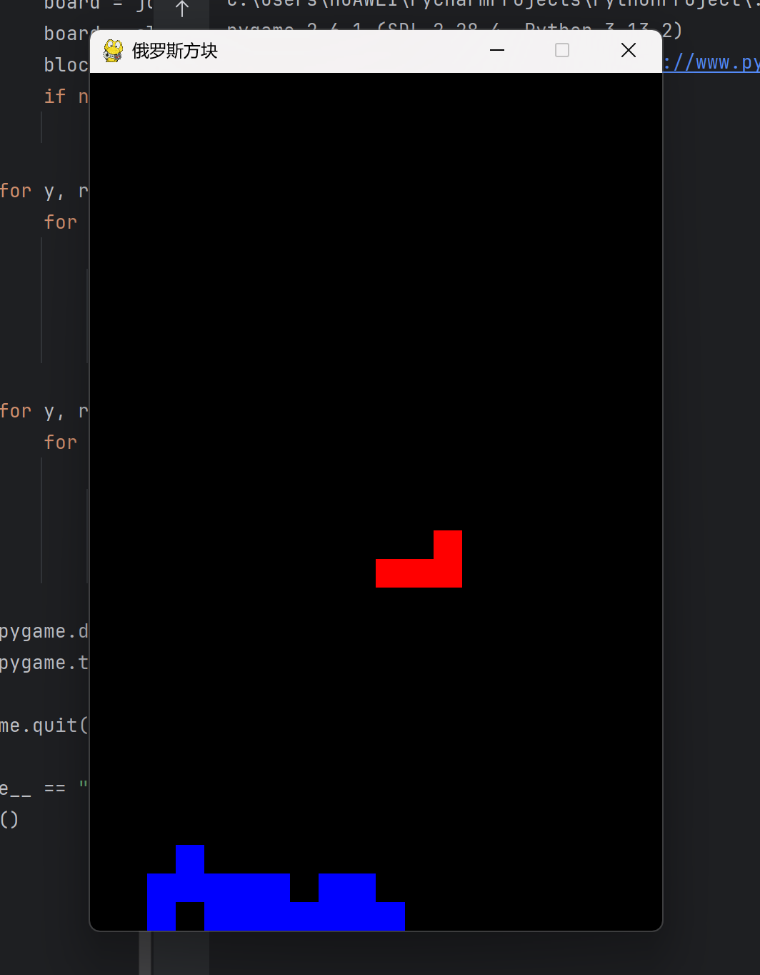 再使用pygame.display.set_caption("俄罗斯方块")设置游戏窗口的标题为“俄罗斯方块”。