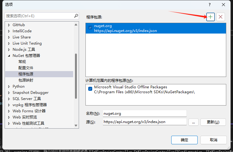 vs2022 - 工具 - Nuget包管理器 - 程序包管理设置 - 程序包源