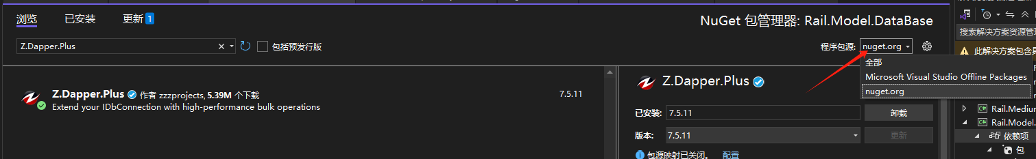 在增加 Nuget包时,选择包源,选择local