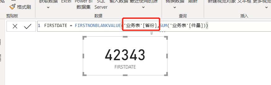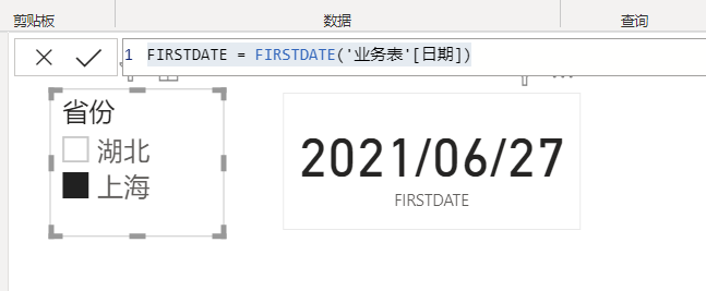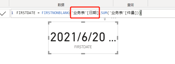 FIRSTDATE = FIRSTDATE('业务表'[日期])