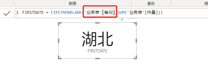 大家有没有发现这里找第一个日期的时候跟FIRSTDATE产生的效果是一样的,但是FIRSTNONBLANK似乎更加强大,它还可以找出对应的省份来,返回文本数据。