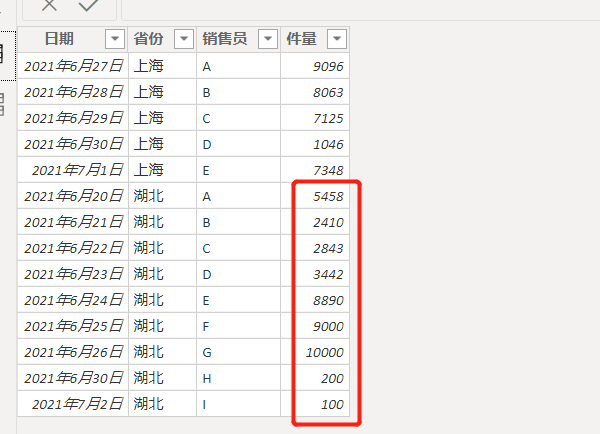上案例:大家都知道上面销售表中件量不为空的情况,湖北是6月20日,上海是6月27日,总的来说是湖北的6月20日。那如何找出这个湖北,或者是6月20日呢