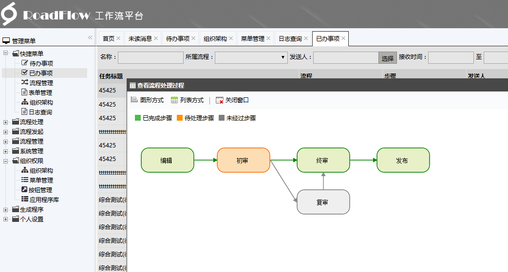流程实例管理模块可实时追踪流程状态,流转过程查询功能则提供流程历史轨迹的可视化回溯。