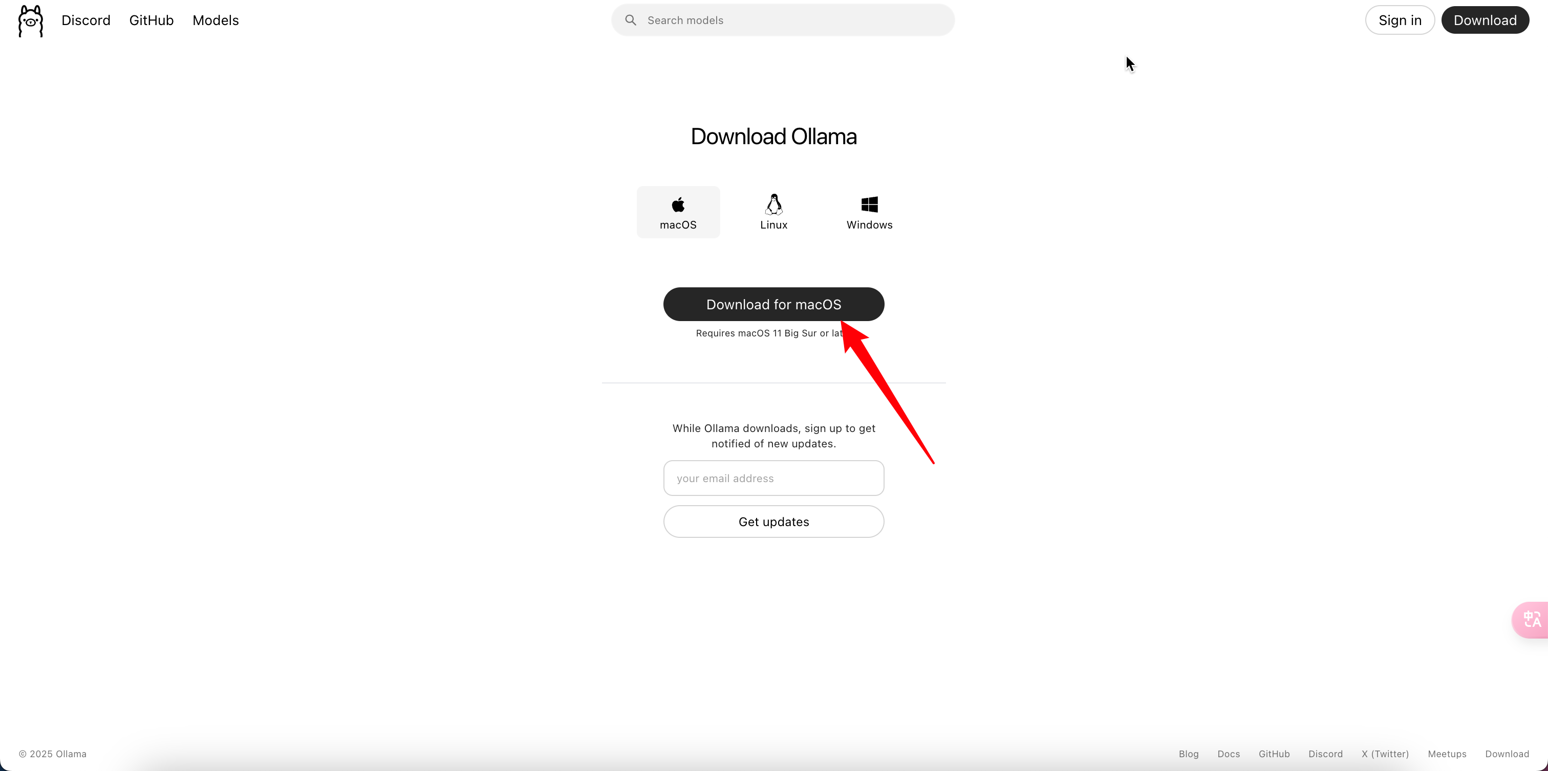 - 下载并安装Ollama(以macOS为例)