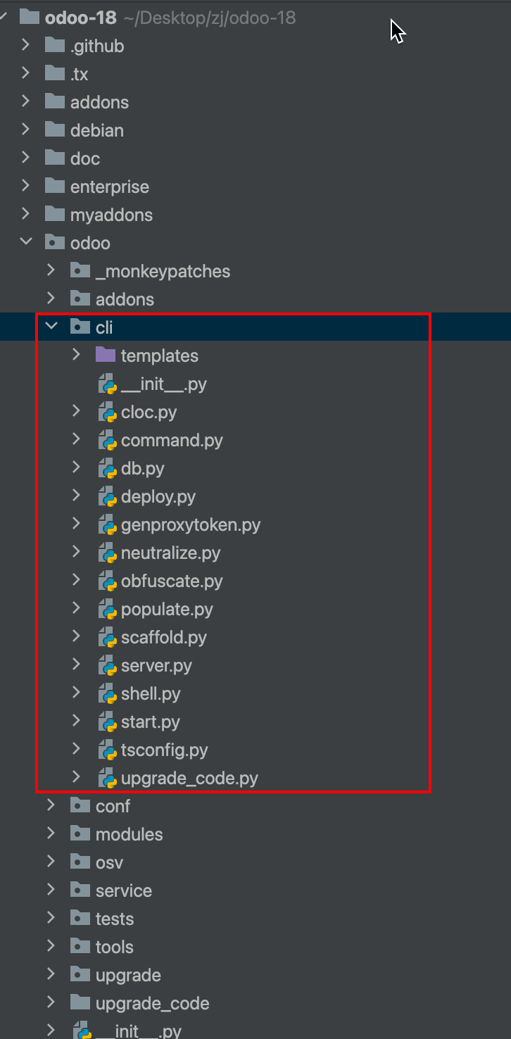 目录,正是这些命令行工具的核心实现地。本文将结合源码,详细解读每个 CLI 文件的功能与实现机制,帮助你快速掌握 Odoo CLI 的用法与原理。