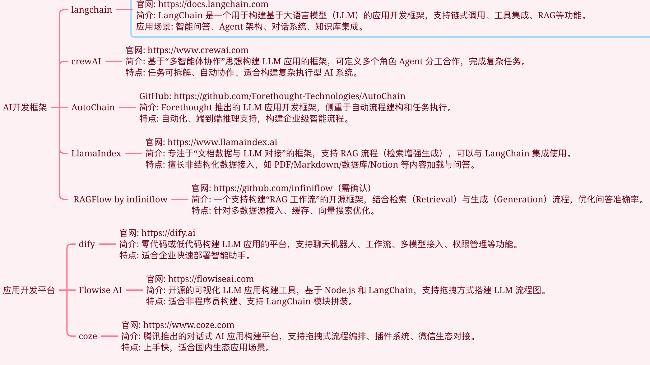 - 简介:专注于"文档数据与 LLM 对接"的框架,支持 RAG 流程,可与 LangChain 集成。支持多种数据源如 PDF、Markdown、Notion 等。
