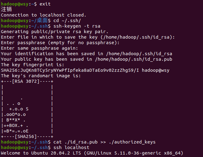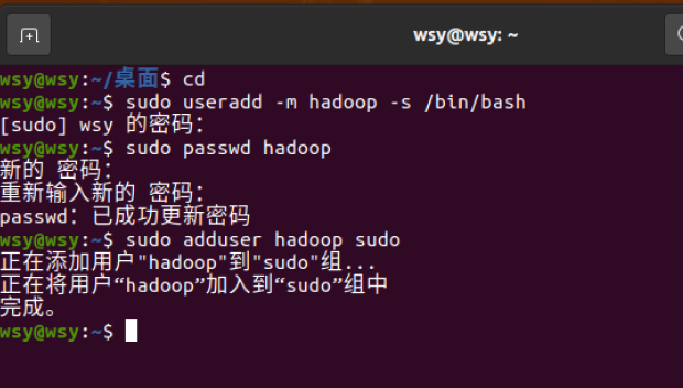 sudo paswd hadoop 将密码设置为hadoop