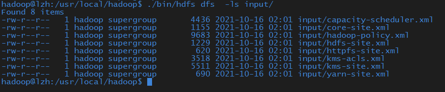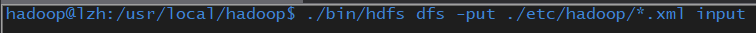 ./bin/hdfs dfs -put ./etc/hadoop/*.xml input