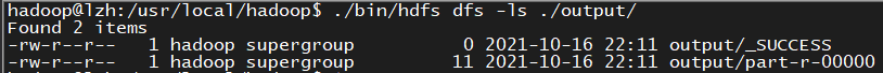 ./bin/hdfs dfs -ls ./output/