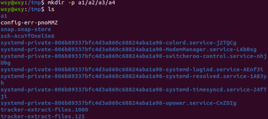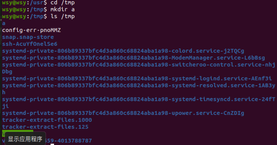 (5)进入/tmp目录,创建一个名为a的目录,并查看有多少目录存在