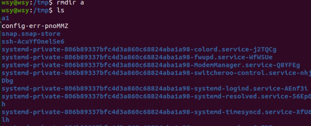 (7)将上例创建的目录a(/tmp下面)删除