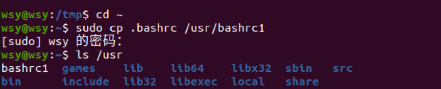 (9)将主文件夹下的.bashrc复制到/usr下,命名为bashrc1