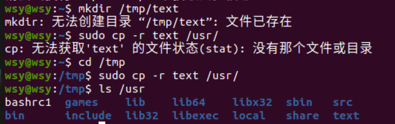 (10)在/tmp下新建目录test,再复制这个目录内容到/usr