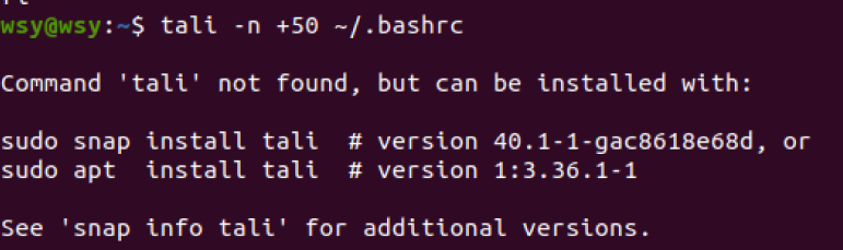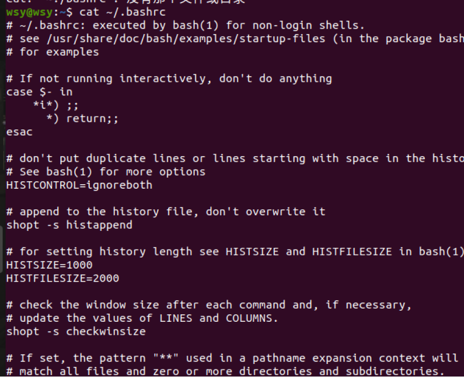 (19)查看主文件夹下.bashrc文件内容,后面50行不显示,只显示前面几行