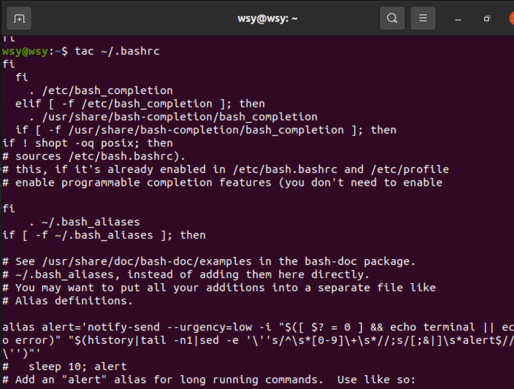 (16)反向查看主文件夹下.bashrc文件内容