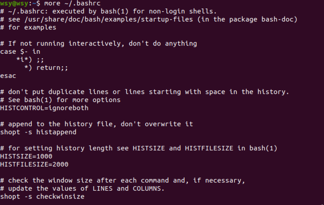 (17)翻页查看主文件夹下.bashrc文件内容