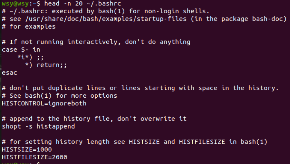 (18)查看主文件夹下.bashrc文件内容前20行